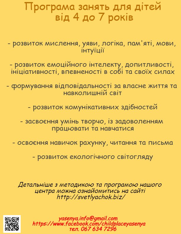 Перший в Дніпрі україномовний дитячий центр "ЯсенЯ", який працює за авторськими сучасними педагогічними методиками.