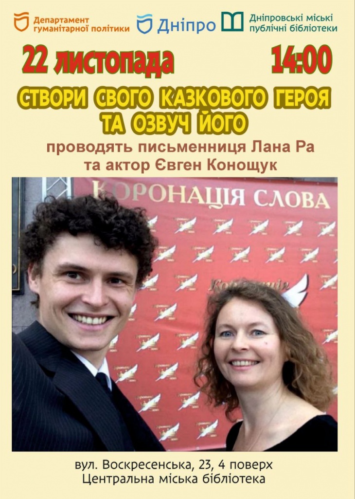 22 та 23 листопада ми з Yevgeniy Konoshchuk та Анна Урюпіна будемо в Дніпрі на чудовому книжковому святі в Центральна міська бібліотека - м. Дніпро