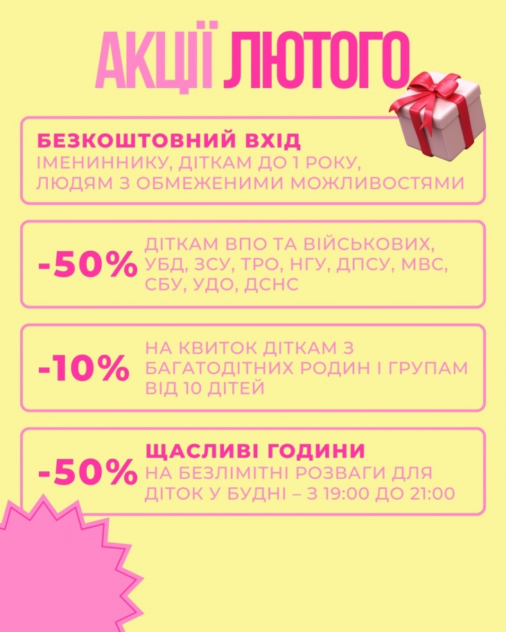 Бесплатный вход для именинников, малышей до 1 года и людей с ограниченными возможностями