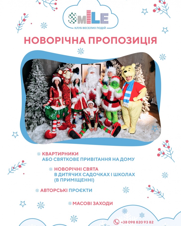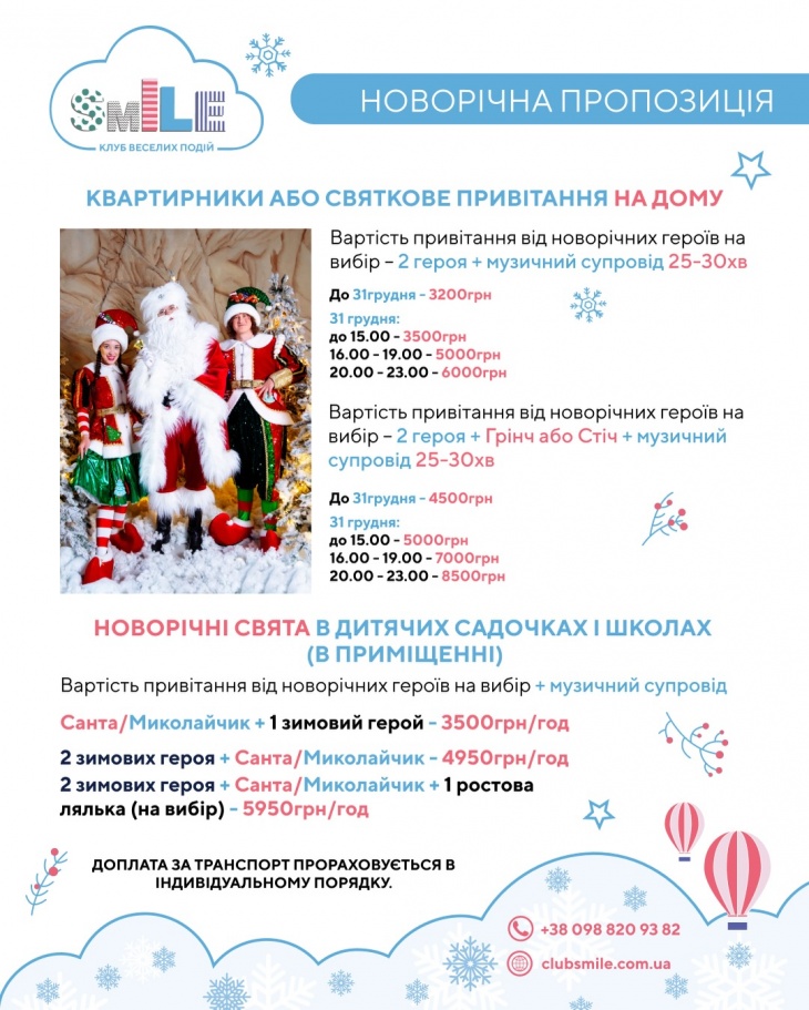 Вартість привітання від новорічних героїв на вибір + музичний супровід